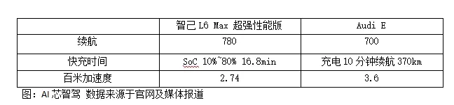 但如果是以30万为标准(前提是Audi E正式上市时价格控制在30以下),Audi E的拉平表现处于中间水平,续航与百米加速度弱于极氪001,但快充计算下来比极氪001略占一点优势。